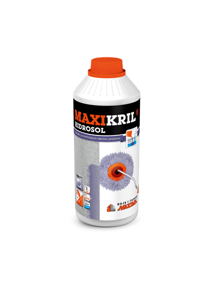 MAXIKRIL Hidrosol je specijalni akrilni dubinski premaz namijenjen za impregnaciju glatkih mineralnih i betonskih
