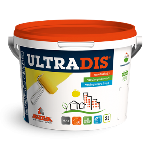 ULTRADIS se svrstava u prvu klasu kvalitete unutarnjih boja. Predstavlja ekološku, disperzijsku, visoko pokrivnu i vodoperivu boju, na bazi akrilata. Posjeduje dobru otpornost na… više