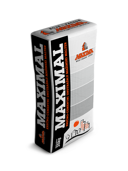 Površine moraju biti: suhe, očišćene od prašine, masti i drugih nečistoća kao i slabo vezanih dijelova. Veće neravnine kao i rupe i šliceve od instalacija potrebno je prethodno ispuniti. Kod zidova koji su izrađeni ciglom, gdje su fuge duboke i široke, iste je potrebno prethodno ispuniti prije žbukanja. Ovako pripremljene površine „gundirati“. Prilikom grundiranja glatkih površina, prije svega savjetujemo upotrebu MAXIMAL Špric-a; druga preporuka je akrilni vezivni most MAXIKRIL Contact. Jako upojne površine grundirati MAXIKRIL Concentrate podlogom. Žbuku nanositi strojno i odmah nakon toga grubo poravnati aluminijskom „H“ letvom. Poslije djelomičnog sušenja vrši se odstranjivanje viška materijala. Žbuka se „otvara“ aluminijskom „T“ letvom ili rešetkastim strugačem („rajberom“) Površina poslije ove obrade ostaje gruba. Nakon „otvaranja“ površina se moči vodom i obrađuje spužvastim hoblom, čime se dobiva fini konačni izgled. Minimalna debljina sloja je 1.5cm. Na neravnim površinama kod kojih je potrebno nanositi žbuku u debljem sloju, ponovno nanijeti sloj žbuke sa pauzama ali dok prethodni sloj još nije vezao.